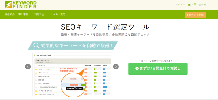 KEYWORD FINDER(キーワードファインダー)は、Googleアナリティクスと連携可能なSEOキーワード選定ツールです。