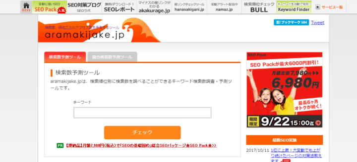 aramakijyakeは、検索順位別の検索数を予測できるツールです。
