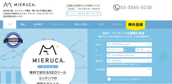 MIERUCA(ミエルカ)は無料から利用できるSEOキーワード選定ツールです。ユーザーの検索意図や競合が獲得しているキーワードをAiによって自動分析ができます。
