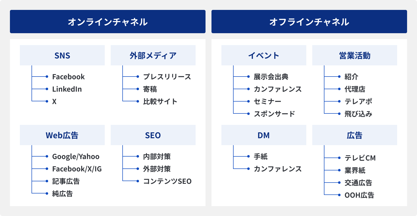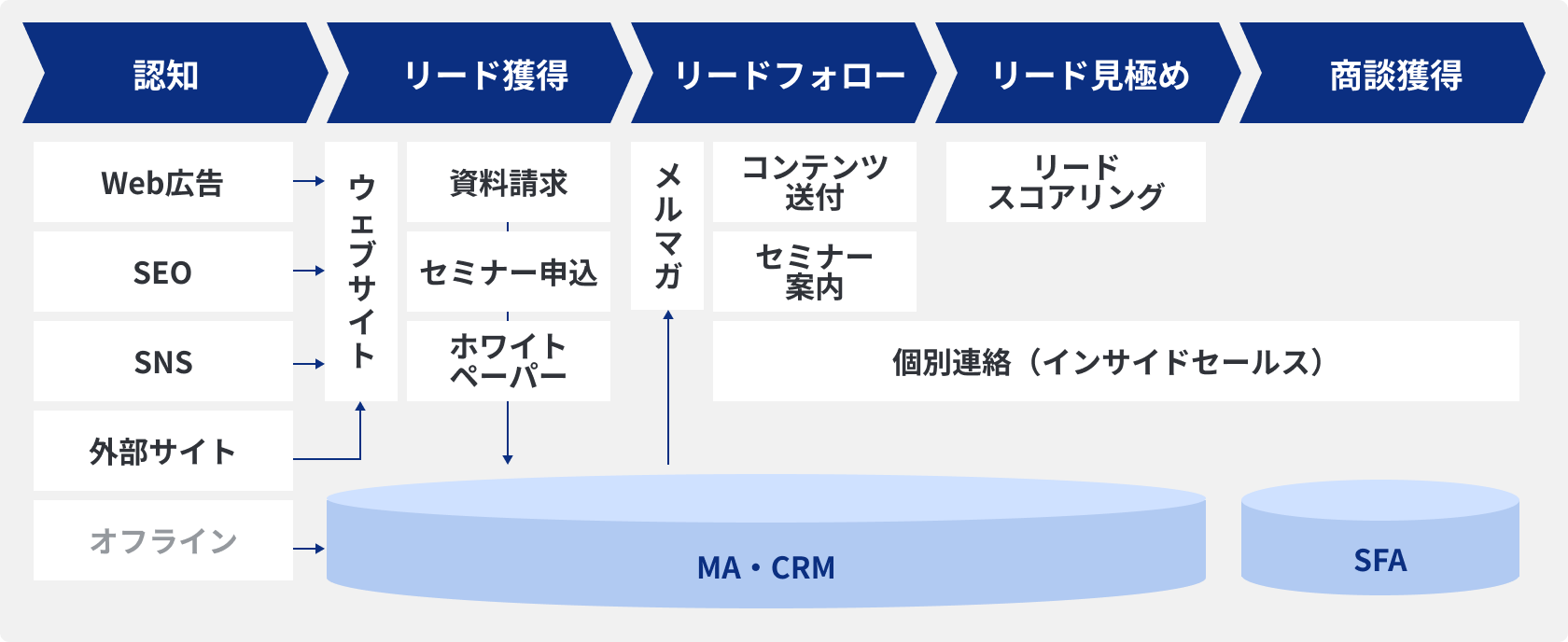 認知拡大、リード獲得、リードフォロー(リードナーチャリング)、リード見極め(リードクオリフィケーション)、商談獲得までのプロセスの中のボトルネックを特定し、継続的な成果拡大に向けた改善提案を施策実行を担います。